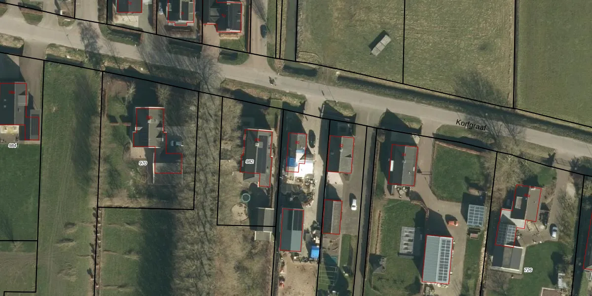 Het perceel waarop Korfgraaf 30 staat heeft een oppervlakte van 2460 m². Dit is een zeer groot perceel. De perceeloppervlakte wordt geregistreerd door het Kadaster. Gedetailleerde informatie over de maten van dit perceel kunt u vinden in het rapport Kadastrale kaart met maatvoering van Korfgraaf 30.