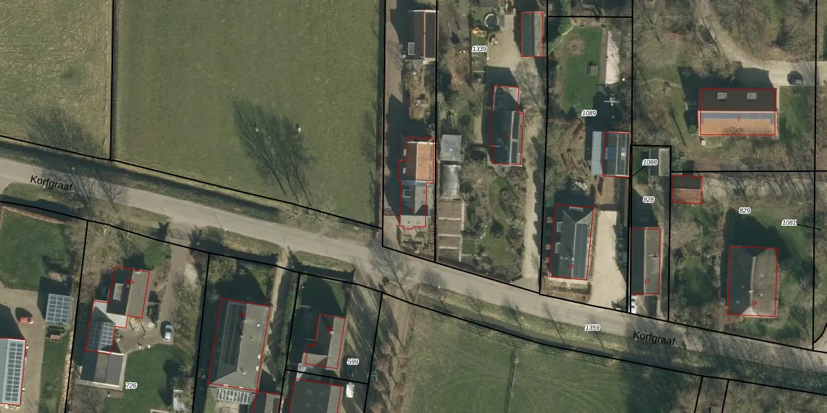 Het perceel waarop Korfgraaf 9 staat heeft een oppervlakte van 4010 m². Dit is een zeer groot perceel. De perceeloppervlakte wordt geregistreerd door het Kadaster. Gedetailleerde informatie over de maten van dit perceel kunt u vinden in het rapport Kadastrale kaart met maatvoering van Korfgraaf 9.