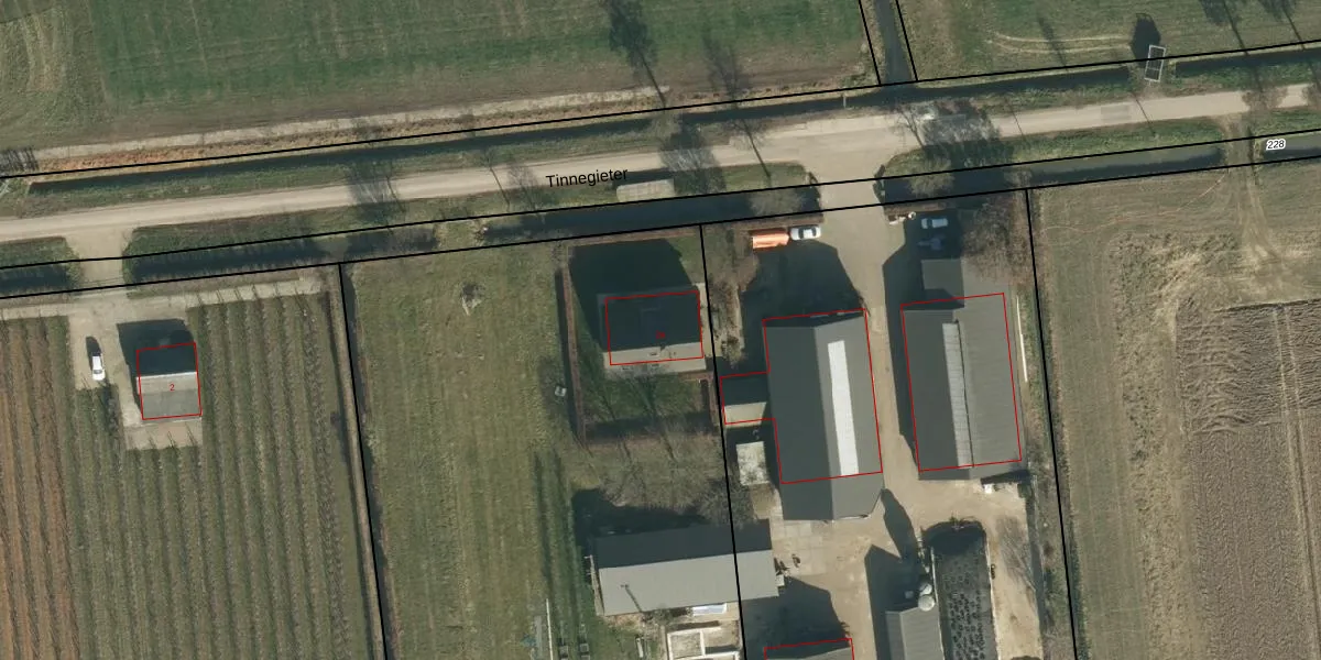 Het perceel waarop Tinnegieter 2-a staat heeft een oppervlakte van 1,3 ha. Dit is een zeer groot perceel. De perceeloppervlakte wordt geregistreerd door het Kadaster. Gedetailleerde informatie over de maten van dit perceel kunt u vinden in het rapport Kadastrale kaart met maatvoering van Tinnegieter 2-a.