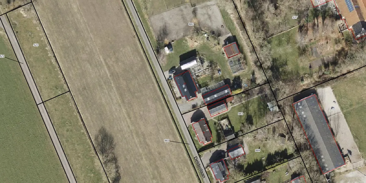 Het perceel waarop Deldenlaan 11 staat heeft een oppervlakte van 4565 m². Dit is een zeer groot perceel. De perceeloppervlakte wordt geregistreerd door het Kadaster. Gedetailleerde informatie over de maten van dit perceel kunt u vinden in het rapport Kadastrale kaart met maatvoering van Deldenlaan 11.