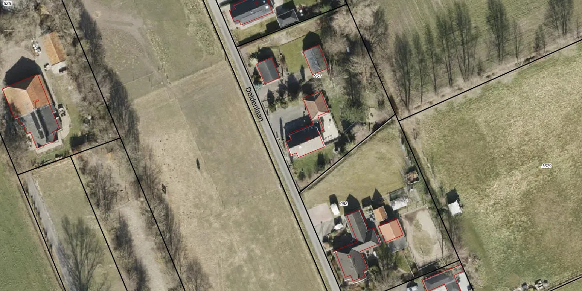 Het perceel waarop Deldenlaan 23 staat heeft een oppervlakte van 1960 m². Dit is een zeer groot perceel. De perceeloppervlakte wordt geregistreerd door het Kadaster. Gedetailleerde informatie over de maten van dit perceel kunt u vinden in het rapport Kadastrale kaart met maatvoering van Deldenlaan 23.