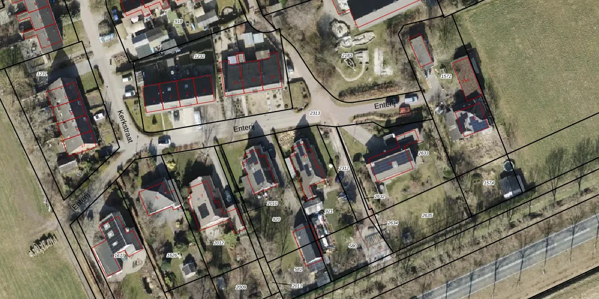 Het perceel waarop Enterij 11 staat heeft een oppervlakte van 545 m². Dit is een groot perceel. De perceeloppervlakte wordt geregistreerd door het Kadaster. Gedetailleerde informatie over de maten van dit perceel kunt u vinden in het rapport Kadastrale kaart met maatvoering van Enterij 11.