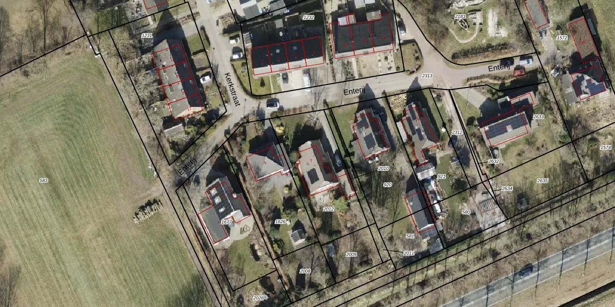Het perceel waarop Enterij 7 staat heeft een oppervlakte van 734 m². Dit is een groot perceel. De perceeloppervlakte wordt geregistreerd door het Kadaster. Gedetailleerde informatie over de maten van dit perceel kunt u vinden in het rapport Kadastrale kaart met maatvoering van Enterij 7.