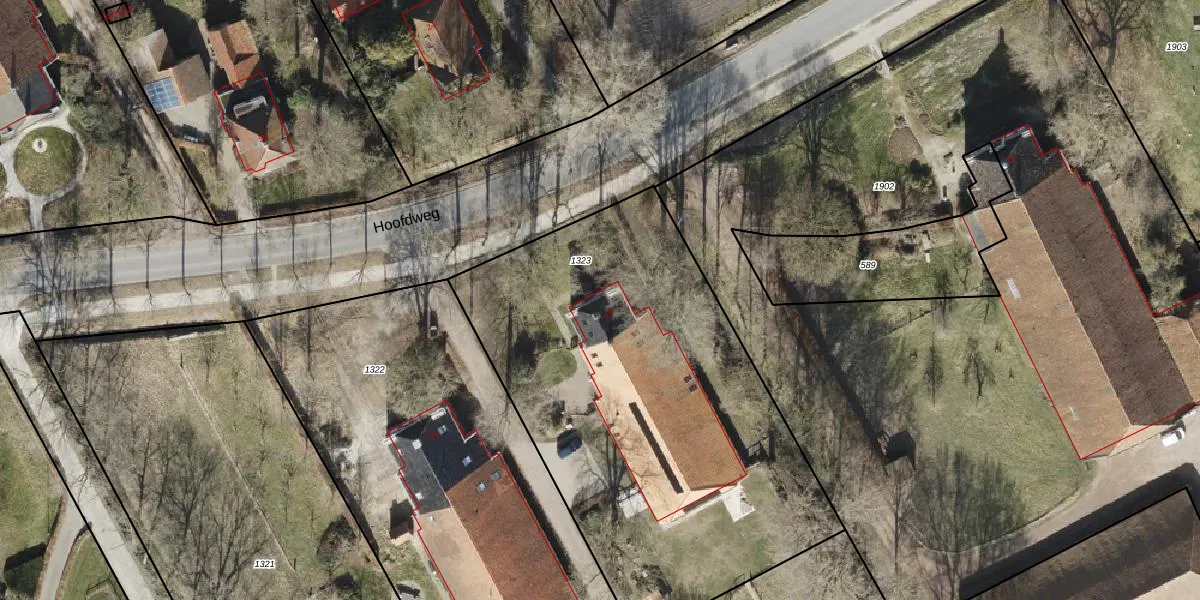 Het perceel waarop Hoofdweg 19 staat heeft een oppervlakte van 2617 m². Dit is een zeer groot perceel. De perceeloppervlakte wordt geregistreerd door het Kadaster. Gedetailleerde informatie over de maten van dit perceel kunt u vinden in het rapport Kadastrale kaart met maatvoering van Hoofdweg 19.