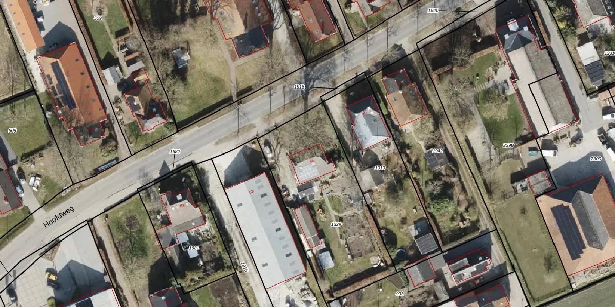 Het perceel waarop Hoofdweg 65 staat heeft een oppervlakte van 1476 m². Dit is een zeer groot perceel. De perceeloppervlakte wordt geregistreerd door het Kadaster. Gedetailleerde informatie over de maten van dit perceel kunt u vinden in het rapport Kadastrale kaart met maatvoering van Hoofdweg 65.
