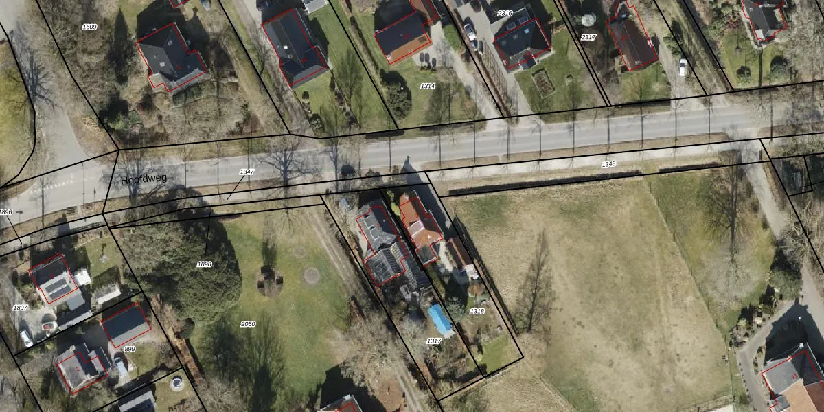 Het perceel waarop Hoofdweg 9 staat heeft een oppervlakte van 566 m². Dit is een groot perceel. De perceeloppervlakte wordt geregistreerd door het Kadaster. Gedetailleerde informatie over de maten van dit perceel kunt u vinden in het rapport Kadastrale kaart met maatvoering van Hoofdweg 9.