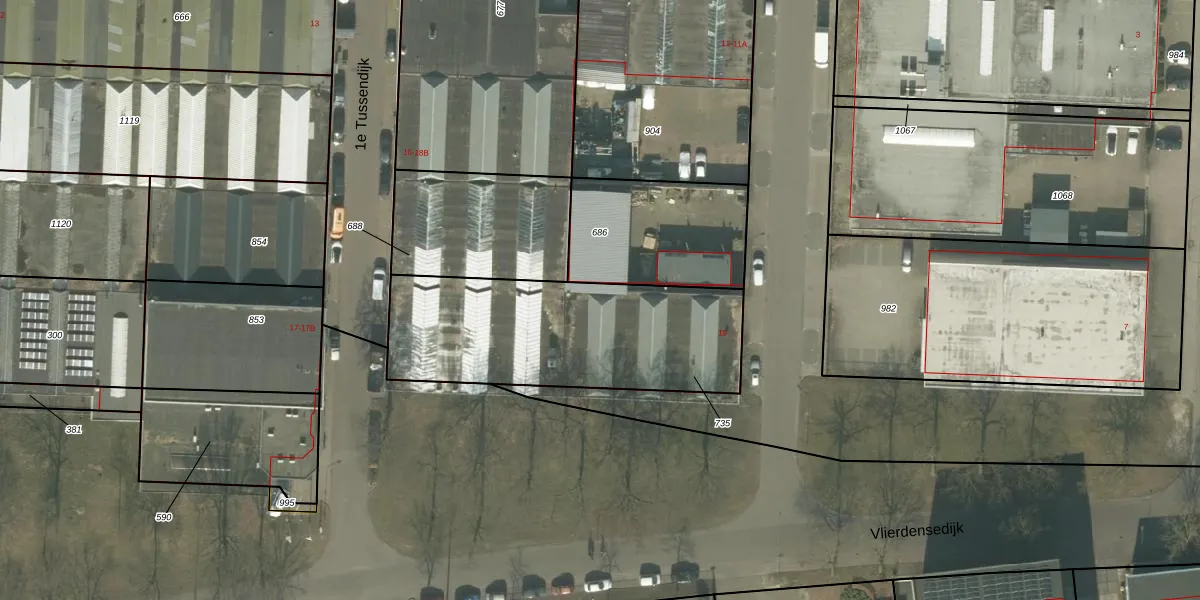 Het perceel waarop 2e Tussendijk 17 staat heeft een oppervlakte van 1034 m². Dit is een zeer groot perceel. De perceeloppervlakte wordt geregistreerd door het Kadaster. Gedetailleerde informatie over de maten van dit perceel kunt u vinden in het rapport Kadastrale kaart met maatvoering van 2e Tussendijk 17.