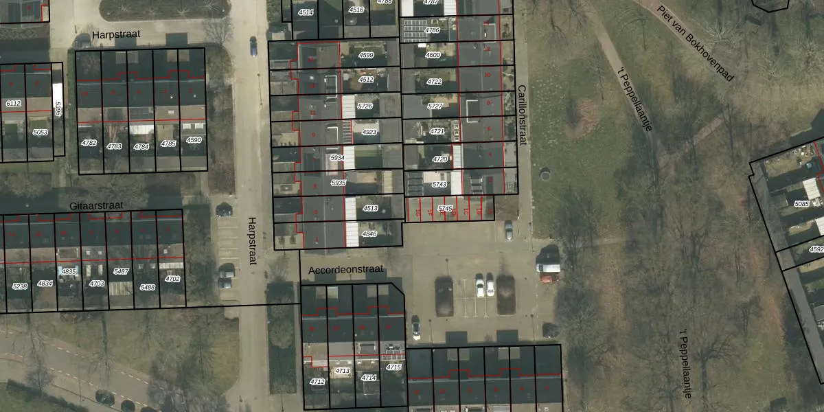 Accordeonstraat 1-G is gelegen op kadastraal perceel HMD00B5745. Deze kadastrale aanduiding is uniek en wordt gebruikt door het Kadaster om eigendomsrechten en andere zakelijke rechten vast te leggen. Het perceel maakt onderdeel uit van de kadastrale gemeente Helmond.