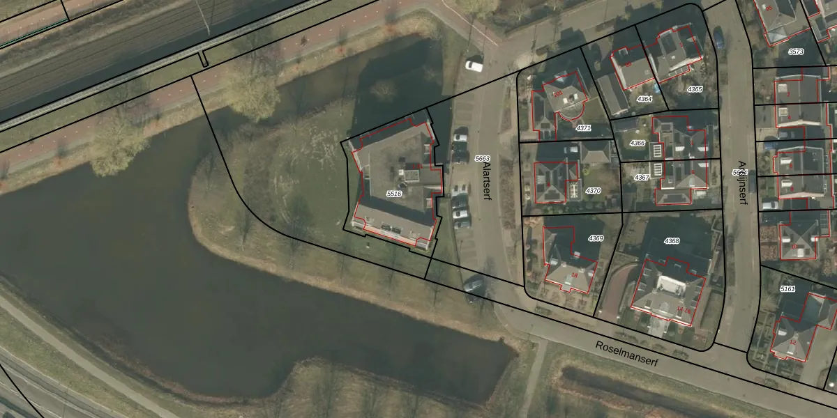 Het perceel waarop Alartserf 15 staat heeft een oppervlakte van 630 m². Dit is een groot perceel. De perceeloppervlakte wordt geregistreerd door het Kadaster. Gedetailleerde informatie over de maten van dit perceel kunt u vinden in het rapport Kadastrale kaart met maatvoering van Alartserf 15.