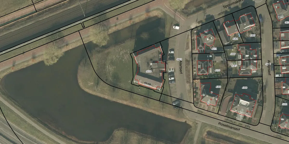 Het perceel waarop Alartserf 21 staat heeft een oppervlakte van 630 m². Dit is een groot perceel. De perceeloppervlakte wordt geregistreerd door het Kadaster. Gedetailleerde informatie over de maten van dit perceel kunt u vinden in het rapport Kadastrale kaart met maatvoering van Alartserf 21.