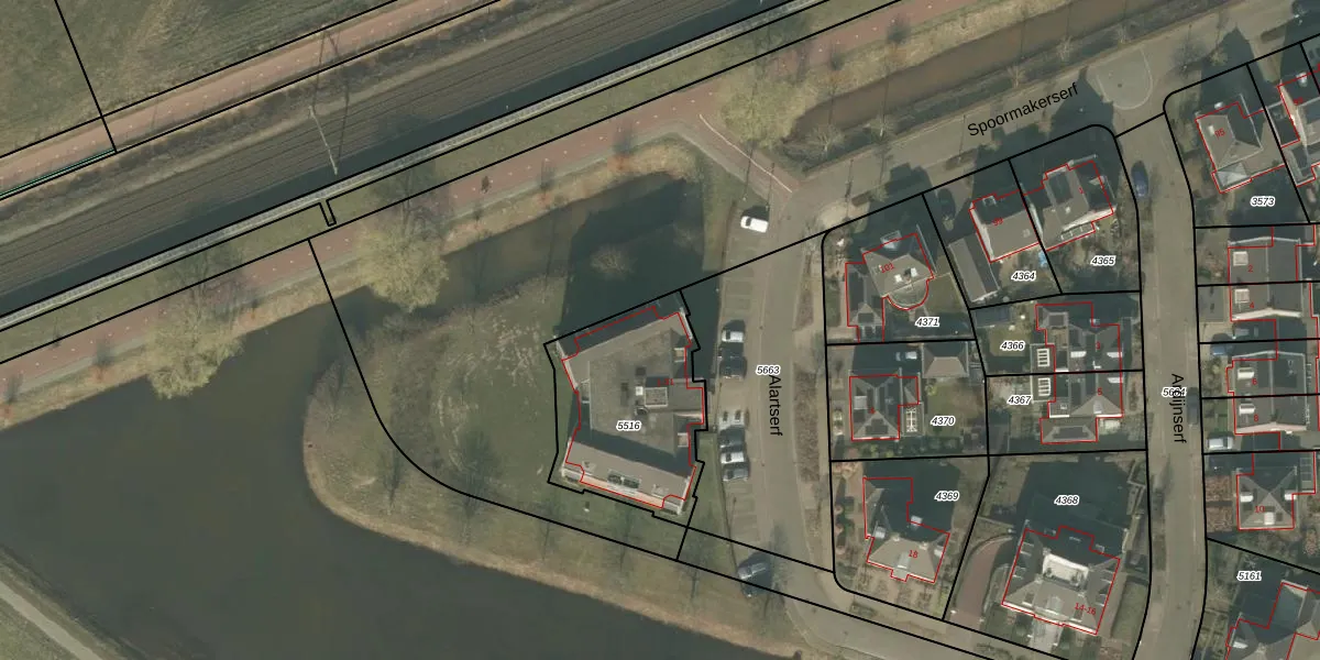 Het perceel waarop Alartserf 25 staat heeft een oppervlakte van 630 m². Dit is een groot perceel. De perceeloppervlakte wordt geregistreerd door het Kadaster. Gedetailleerde informatie over de maten van dit perceel kunt u vinden in het rapport Kadastrale kaart met maatvoering van Alartserf 25.