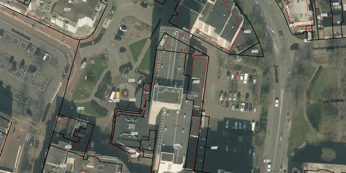 Het perceel waarop Ameidepark 1011 staat heeft een oppervlakte van 2460 m². Dit is een zeer groot perceel. De perceeloppervlakte wordt geregistreerd door het Kadaster. Gedetailleerde informatie over de maten van dit perceel kunt u vinden in het rapport Kadastrale kaart met maatvoering van Ameidepark 1011.