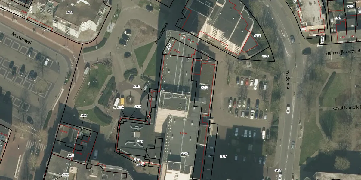Het perceel waarop Ameidepark 1012 staat heeft een oppervlakte van 2460 m². Dit is een zeer groot perceel. De perceeloppervlakte wordt geregistreerd door het Kadaster. Gedetailleerde informatie over de maten van dit perceel kunt u vinden in het rapport Kadastrale kaart met maatvoering van Ameidepark 1012.