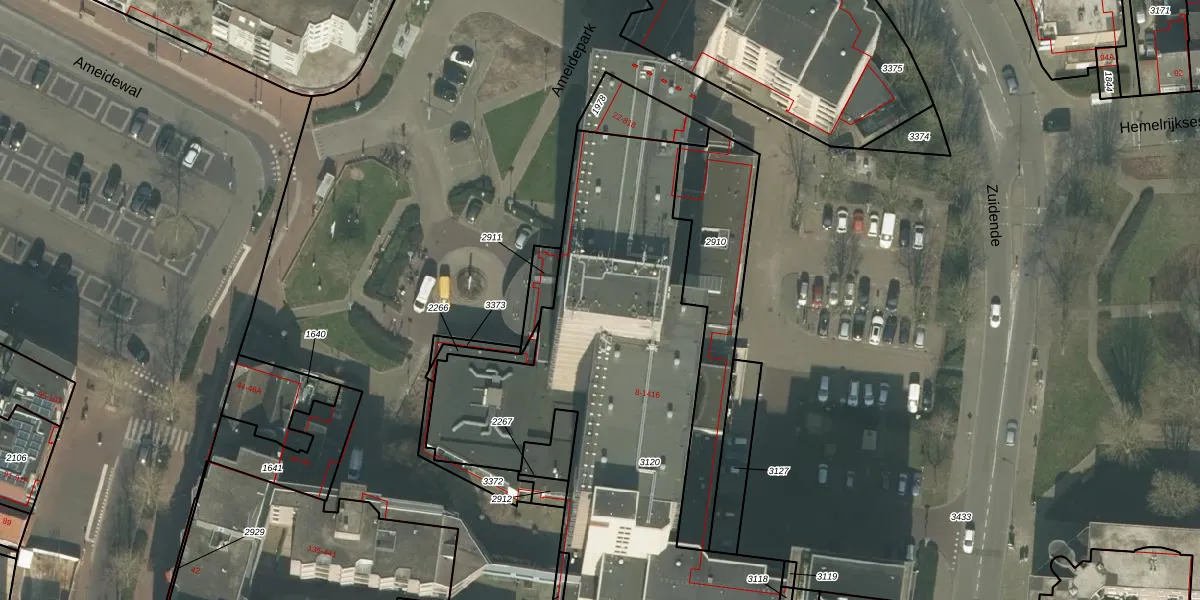 Het perceel waarop Ameidepark 905 staat heeft een oppervlakte van 2460 m². Dit is een zeer groot perceel. De perceeloppervlakte wordt geregistreerd door het Kadaster. Gedetailleerde informatie over de maten van dit perceel kunt u vinden in het rapport Kadastrale kaart met maatvoering van Ameidepark 905.