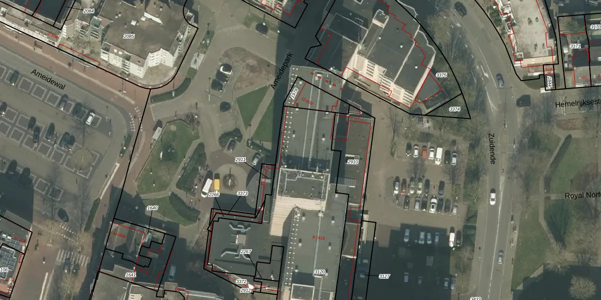 Het perceel waarop Ameidepark 915 staat heeft een oppervlakte van 2460 m². Dit is een zeer groot perceel. De perceeloppervlakte wordt geregistreerd door het Kadaster. Gedetailleerde informatie over de maten van dit perceel kunt u vinden in het rapport Kadastrale kaart met maatvoering van Ameidepark 915.