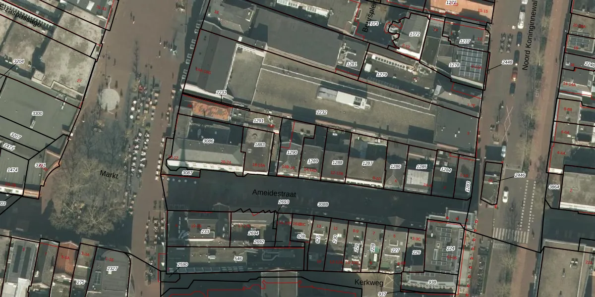Ameidestraat 14-B is gelegen op kadastraal perceel HMD00I1290. Deze kadastrale aanduiding is uniek en wordt gebruikt door het Kadaster om eigendomsrechten en andere zakelijke rechten vast te leggen. Het perceel maakt onderdeel uit van de kadastrale gemeente Helmond.
