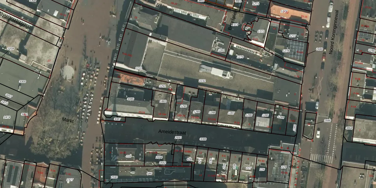 Het perceel waarop Ameidestraat 14-E staat heeft een oppervlakte van 170 m². Dit is een middelgroot perceel. De perceeloppervlakte wordt geregistreerd door het Kadaster. Gedetailleerde informatie over de maten van dit perceel kunt u vinden in het rapport Kadastrale kaart met maatvoering van Ameidestraat 14-E.