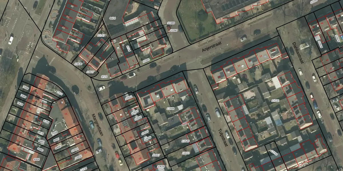 Het perceel waarop Anjerstraat 6 staat heeft een oppervlakte van 1055 m². Dit is een zeer groot perceel. De perceeloppervlakte wordt geregistreerd door het Kadaster. Gedetailleerde informatie over de maten van dit perceel kunt u vinden in het rapport Kadastrale kaart met maatvoering van Anjerstraat 6.