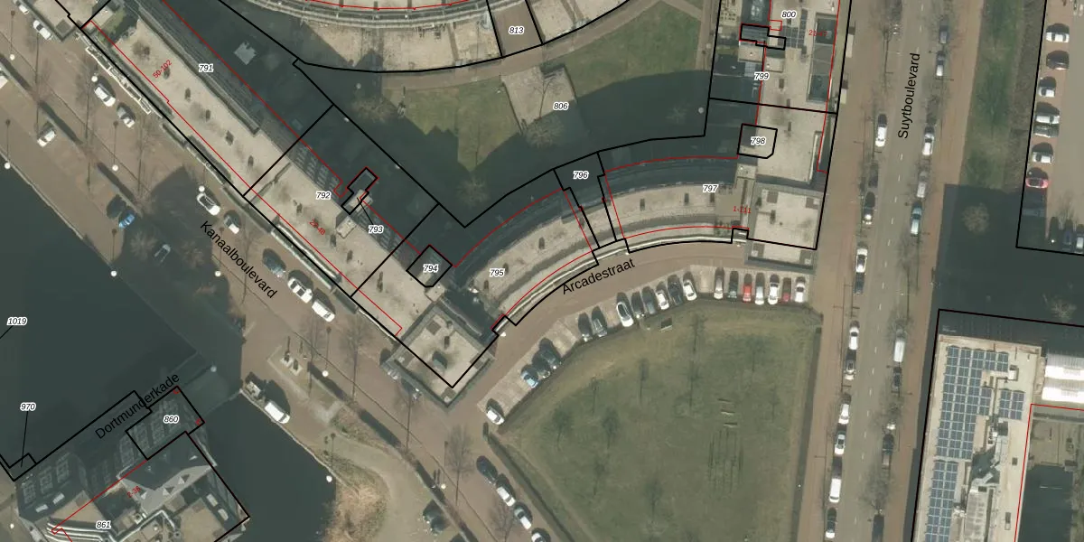 Het perceel waarop Arcadestraat 53 staat heeft een oppervlakte van 880 m². Dit is een groot perceel. De perceeloppervlakte wordt geregistreerd door het Kadaster. Gedetailleerde informatie over de maten van dit perceel kunt u vinden in het rapport Kadastrale kaart met maatvoering van Arcadestraat 53.