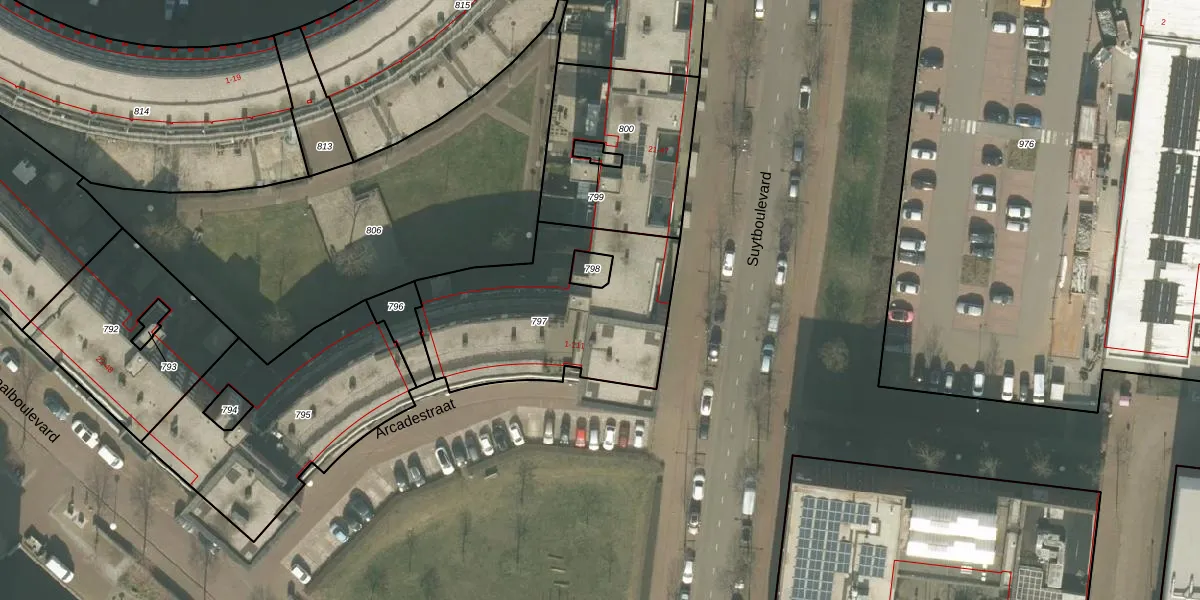 Het perceel waarop Arcadestraat 65 staat heeft een oppervlakte van 880 m². Dit is een groot perceel. De perceeloppervlakte wordt geregistreerd door het Kadaster. Gedetailleerde informatie over de maten van dit perceel kunt u vinden in het rapport Kadastrale kaart met maatvoering van Arcadestraat 65.
