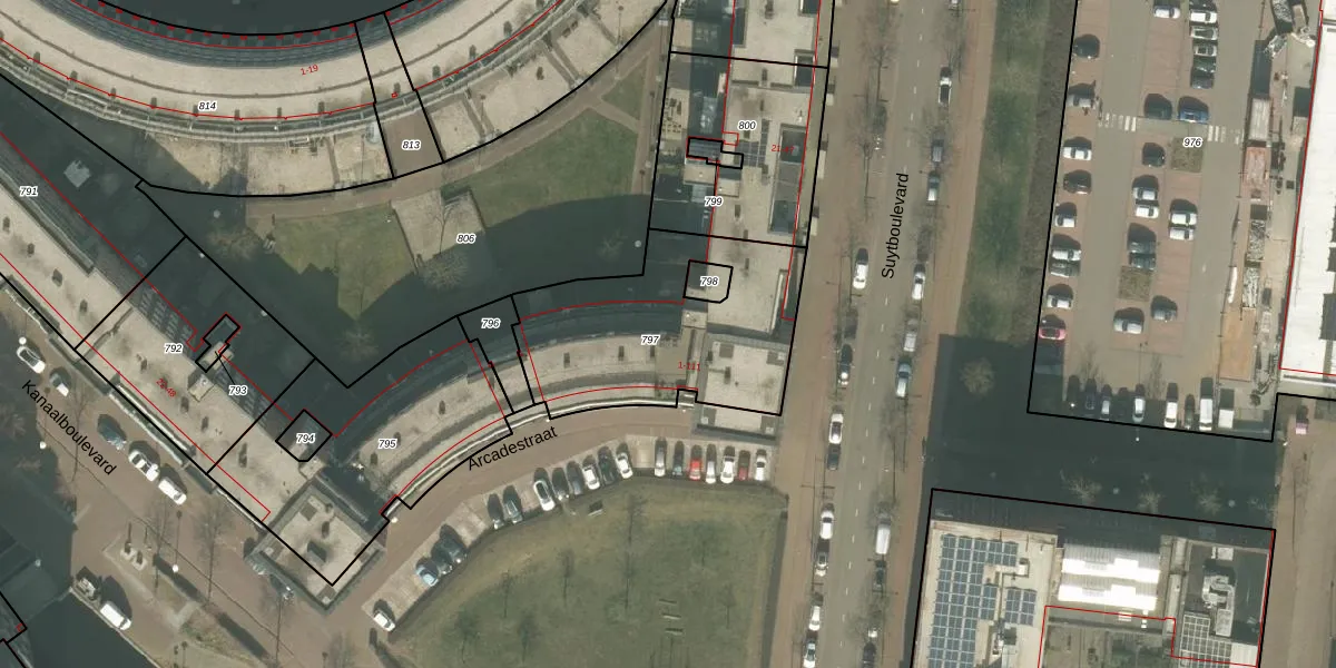 Het perceel waarop Arcadestraat 87 staat heeft een oppervlakte van 880 m². Dit is een groot perceel. De perceeloppervlakte wordt geregistreerd door het Kadaster. Gedetailleerde informatie over de maten van dit perceel kunt u vinden in het rapport Kadastrale kaart met maatvoering van Arcadestraat 87.