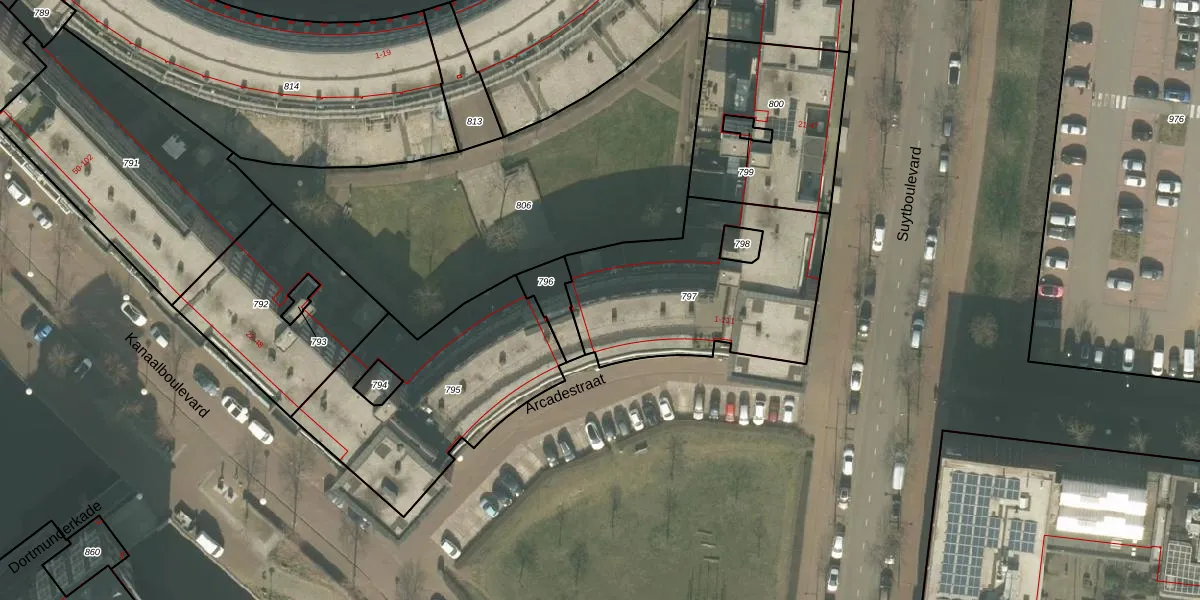 Het perceel waarop Arcadestraat 91 staat heeft een oppervlakte van 880 m². Dit is een groot perceel. De perceeloppervlakte wordt geregistreerd door het Kadaster. Gedetailleerde informatie over de maten van dit perceel kunt u vinden in het rapport Kadastrale kaart met maatvoering van Arcadestraat 91.