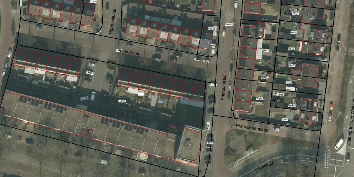 Het perceel waarop Asterstraat 24 staat heeft een oppervlakte van 5632 m². Dit is een zeer groot perceel. De perceeloppervlakte wordt geregistreerd door het Kadaster. Gedetailleerde informatie over de maten van dit perceel kunt u vinden in het rapport Kadastrale kaart met maatvoering van Asterstraat 24.