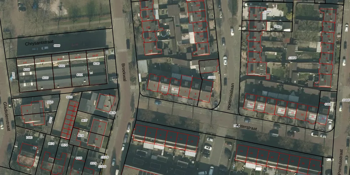 Het perceel waarop Asterstraat 5 staat heeft een oppervlakte van 6551 m². Dit is een zeer groot perceel. De perceeloppervlakte wordt geregistreerd door het Kadaster. Gedetailleerde informatie over de maten van dit perceel kunt u vinden in het rapport Kadastrale kaart met maatvoering van Asterstraat 5.