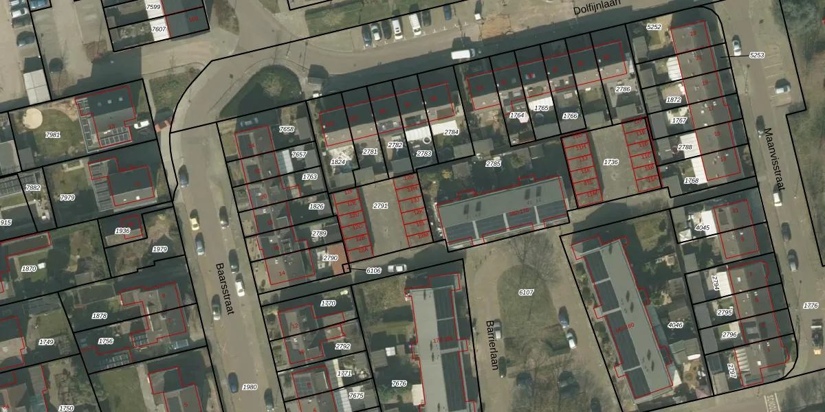 Het perceel waarop Baarsstraat 12-J staat heeft een oppervlakte van 380 m². Dit is een groot perceel. De perceeloppervlakte wordt geregistreerd door het Kadaster. Gedetailleerde informatie over de maten van dit perceel kunt u vinden in het rapport Kadastrale kaart met maatvoering van Baarsstraat 12-J.