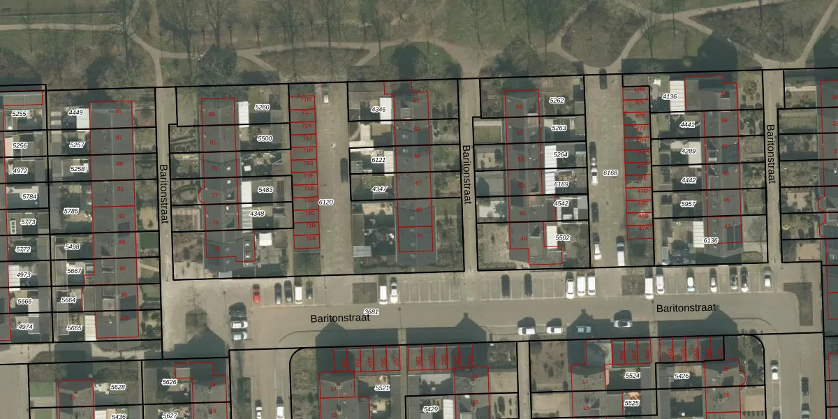 Baritonstraat 69 is gelegen op kadastraal perceel HMD00B6120. Deze kadastrale aanduiding is uniek en wordt gebruikt door het Kadaster om eigendomsrechten en andere zakelijke rechten vast te leggen. Het perceel maakt onderdeel uit van de kadastrale gemeente Helmond.