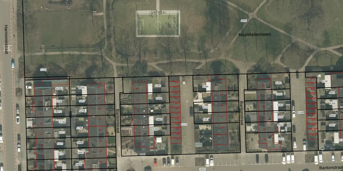 Baritonstraat 71-M is gelegen op kadastraal perceel HMD00B6120. Deze kadastrale aanduiding is uniek en wordt gebruikt door het Kadaster om eigendomsrechten en andere zakelijke rechten vast te leggen. Het perceel maakt onderdeel uit van de kadastrale gemeente Helmond.