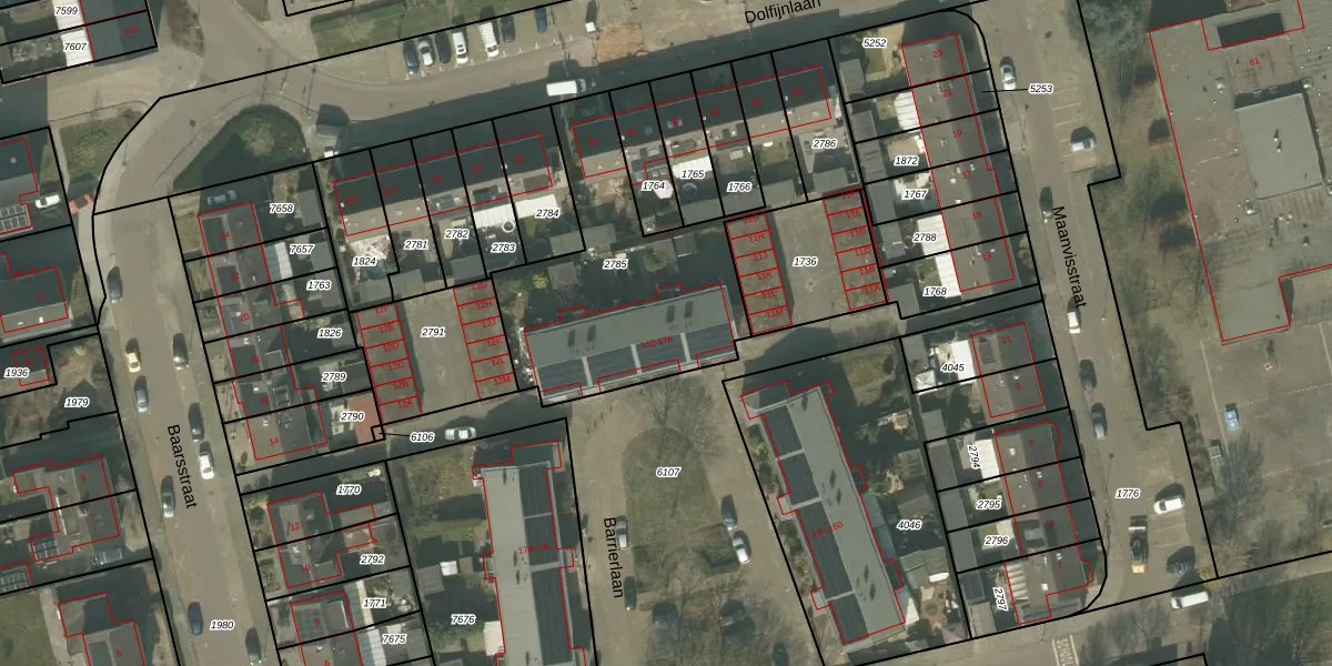 Het perceel waarop Barrierlaan 166 staat heeft een oppervlakte van 1115 m². Dit is een zeer groot perceel. De perceeloppervlakte wordt geregistreerd door het Kadaster. Gedetailleerde informatie over de maten van dit perceel kunt u vinden in het rapport Kadastrale kaart met maatvoering van Barrierlaan 166.
