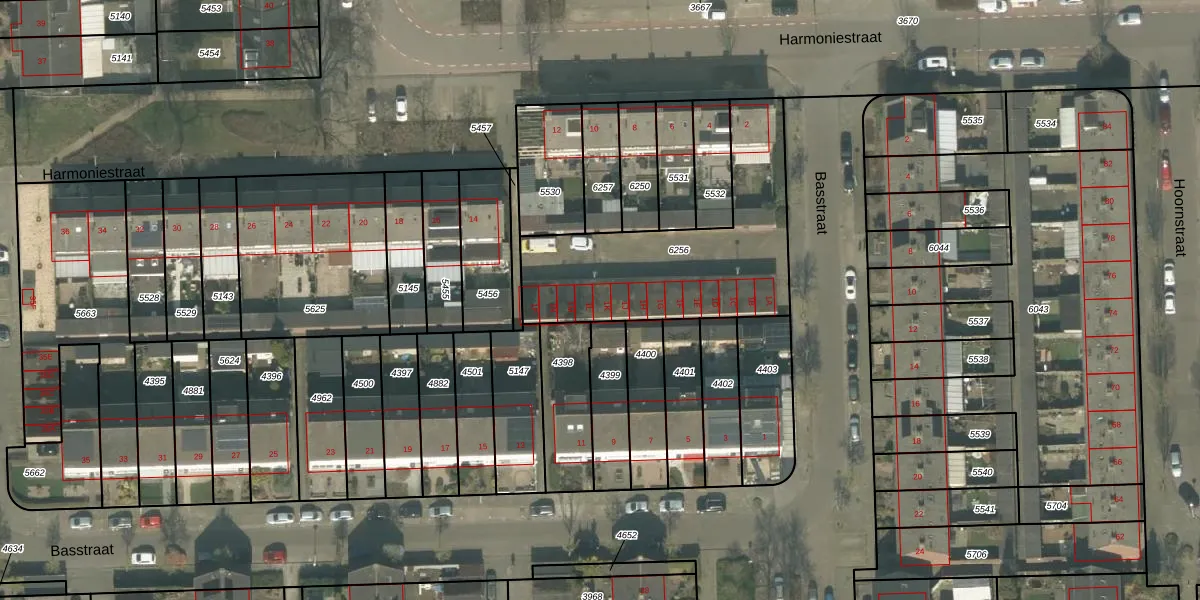 Het perceel waarop Basstraat 1-K staat heeft een oppervlakte van 873 m². Dit is een groot perceel. De perceeloppervlakte wordt geregistreerd door het Kadaster. Gedetailleerde informatie over de maten van dit perceel kunt u vinden in het rapport Kadastrale kaart met maatvoering van Basstraat 1-K.