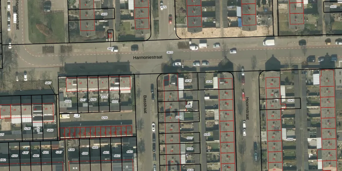Basstraat 2 is gelegen op kadastraal perceel HMD00B5535. Deze kadastrale aanduiding is uniek en wordt gebruikt door het Kadaster om eigendomsrechten en andere zakelijke rechten vast te leggen. Het perceel maakt onderdeel uit van de kadastrale gemeente Helmond.