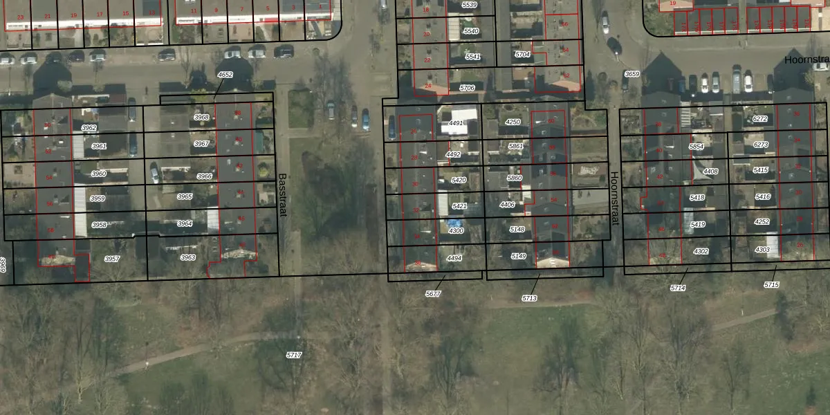 Basstraat 32 is gelegen op kadastraal perceel HMD00B5421. Deze kadastrale aanduiding is uniek en wordt gebruikt door het Kadaster om eigendomsrechten en andere zakelijke rechten vast te leggen. Het perceel maakt onderdeel uit van de kadastrale gemeente Helmond.