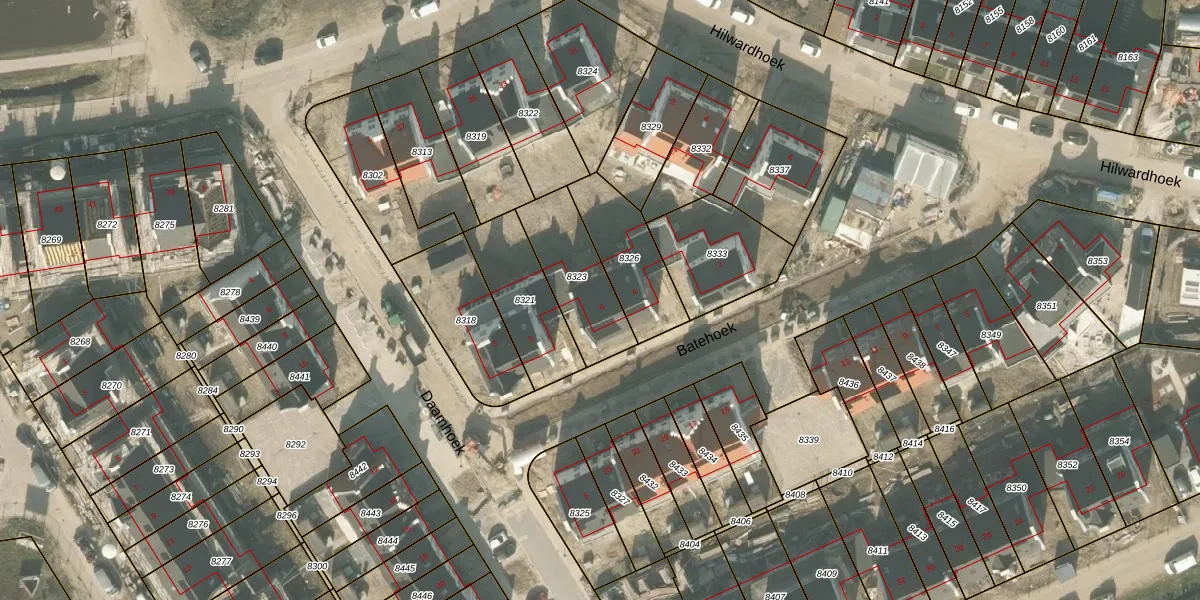 Het perceel waarop Batehoek 6 staat heeft een oppervlakte van 275 m². Dit is een middelgroot perceel. De perceeloppervlakte wordt geregistreerd door het Kadaster. Gedetailleerde informatie over de maten van dit perceel kunt u vinden in het rapport Kadastrale kaart met maatvoering van Batehoek 6.