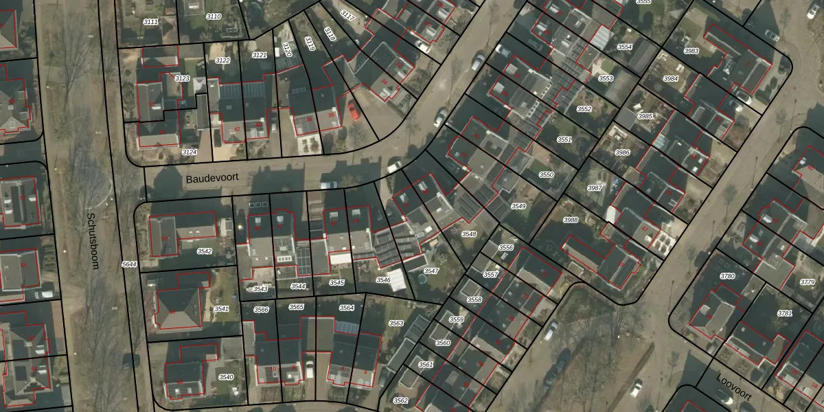 Het perceel waarop Baudevoort 41 staat heeft een oppervlakte van 353 m². Dit is een groot perceel. De perceeloppervlakte wordt geregistreerd door het Kadaster. Gedetailleerde informatie over de maten van dit perceel kunt u vinden in het rapport Kadastrale kaart met maatvoering van Baudevoort 41.