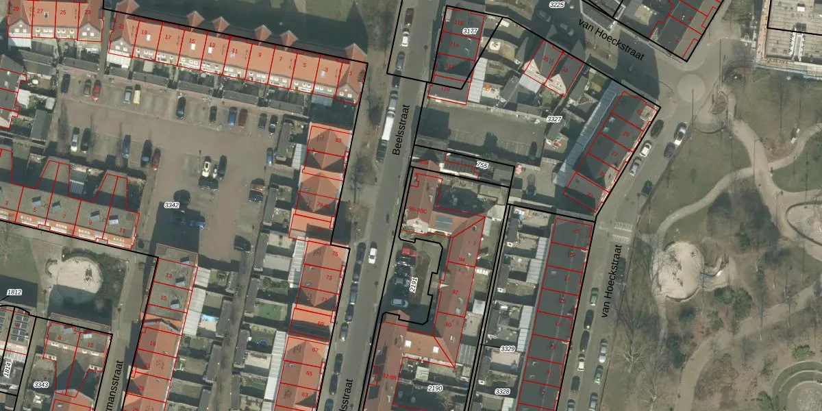 Het perceel waarop Beelsstraat 98-A staat heeft een oppervlakte van 2630 m². Dit is een zeer groot perceel. De perceeloppervlakte wordt geregistreerd door het Kadaster. Gedetailleerde informatie over de maten van dit perceel kunt u vinden in het rapport Kadastrale kaart met maatvoering van Beelsstraat 98-A.
