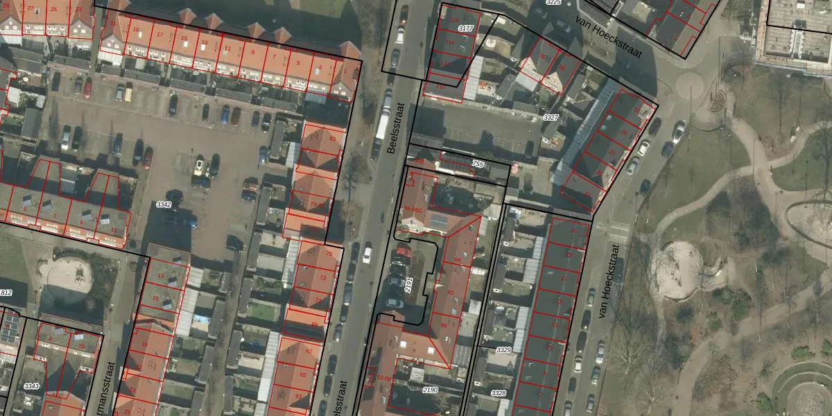 Het perceel waarop Beelsstraat 98-B staat heeft een oppervlakte van 2630 m². Dit is een zeer groot perceel. De perceeloppervlakte wordt geregistreerd door het Kadaster. Gedetailleerde informatie over de maten van dit perceel kunt u vinden in het rapport Kadastrale kaart met maatvoering van Beelsstraat 98-B.