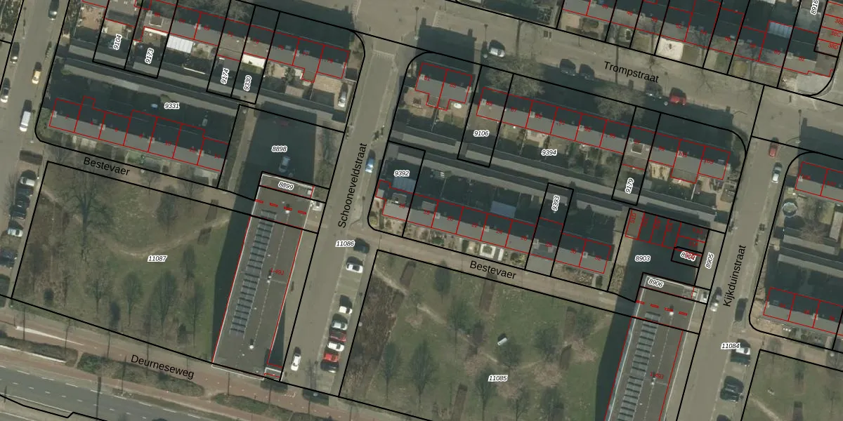 Het perceel waarop Bestevaer 18 staat heeft een oppervlakte van 2556 m². Dit is een zeer groot perceel. De perceeloppervlakte wordt geregistreerd door het Kadaster. Gedetailleerde informatie over de maten van dit perceel kunt u vinden in het rapport Kadastrale kaart met maatvoering van Bestevaer 18.