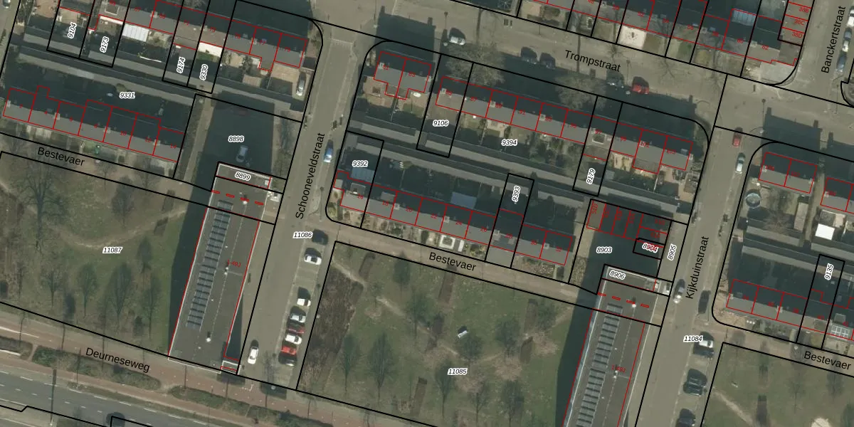 Het perceel waarop Bestevaer 22 staat heeft een oppervlakte van 2556 m². Dit is een zeer groot perceel. De perceeloppervlakte wordt geregistreerd door het Kadaster. Gedetailleerde informatie over de maten van dit perceel kunt u vinden in het rapport Kadastrale kaart met maatvoering van Bestevaer 22.
