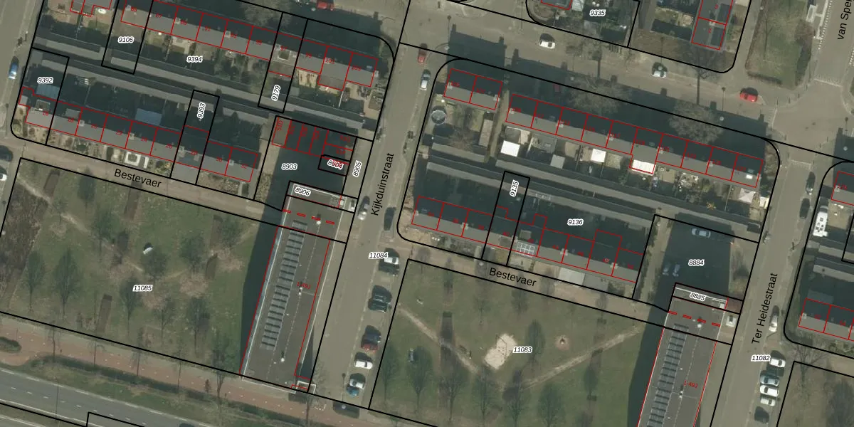 Het perceel waarop Bestevaer 34 staat heeft een oppervlakte van 3023 m². Dit is een zeer groot perceel. De perceeloppervlakte wordt geregistreerd door het Kadaster. Gedetailleerde informatie over de maten van dit perceel kunt u vinden in het rapport Kadastrale kaart met maatvoering van Bestevaer 34.