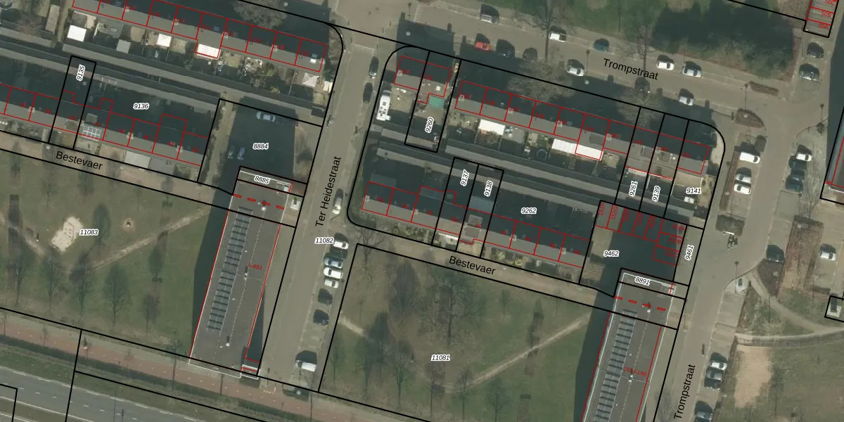 Het perceel waarop Bestevaer 56 staat heeft een oppervlakte van 2194 m². Dit is een zeer groot perceel. De perceeloppervlakte wordt geregistreerd door het Kadaster. Gedetailleerde informatie over de maten van dit perceel kunt u vinden in het rapport Kadastrale kaart met maatvoering van Bestevaer 56.
