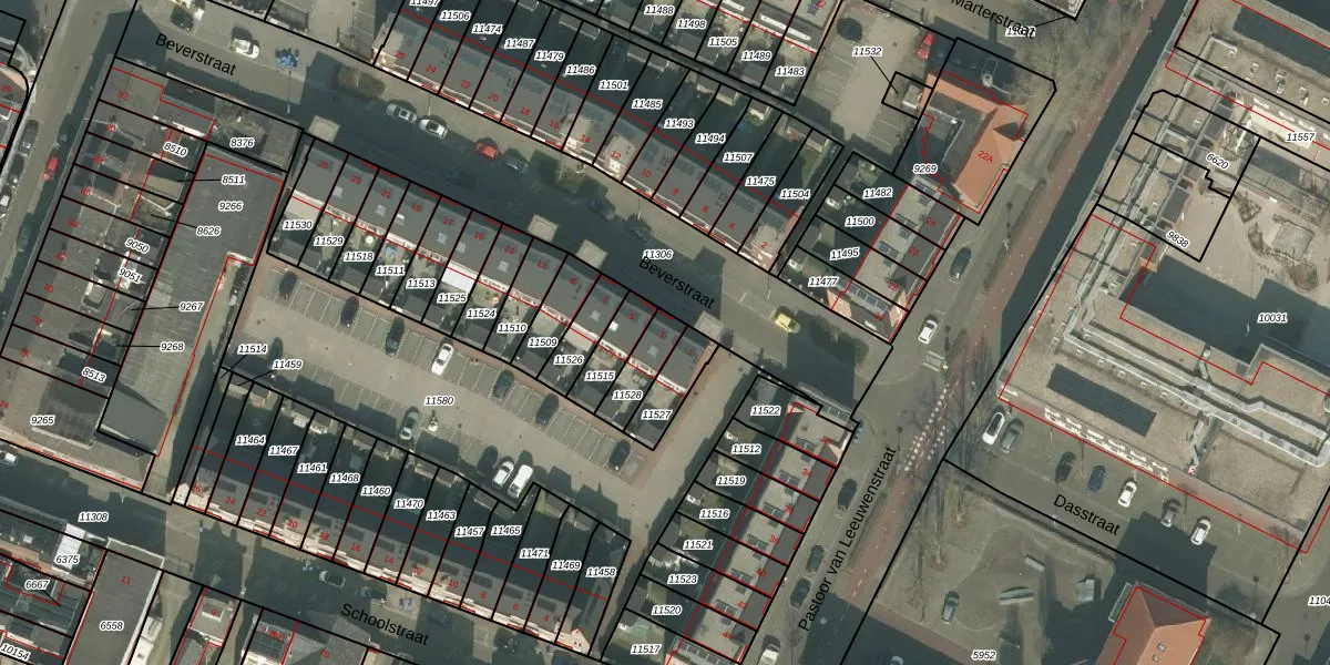 Het perceel waarop Beverstraat 3 staat heeft een oppervlakte van 96 m². Dit is een klein perceel. De perceeloppervlakte wordt geregistreerd door het Kadaster. Gedetailleerde informatie over de maten van dit perceel kunt u vinden in het rapport Kadastrale kaart met maatvoering van Beverstraat 3.