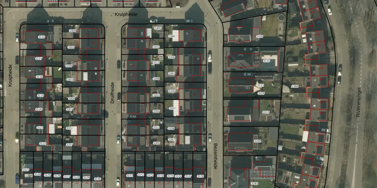 Het perceel waarop Bezemheide 9 staat heeft een oppervlakte van 206 m². Dit is een middelgroot perceel. De perceeloppervlakte wordt geregistreerd door het Kadaster. Gedetailleerde informatie over de maten van dit perceel kunt u vinden in het rapport Kadastrale kaart met maatvoering van Bezemheide 9.