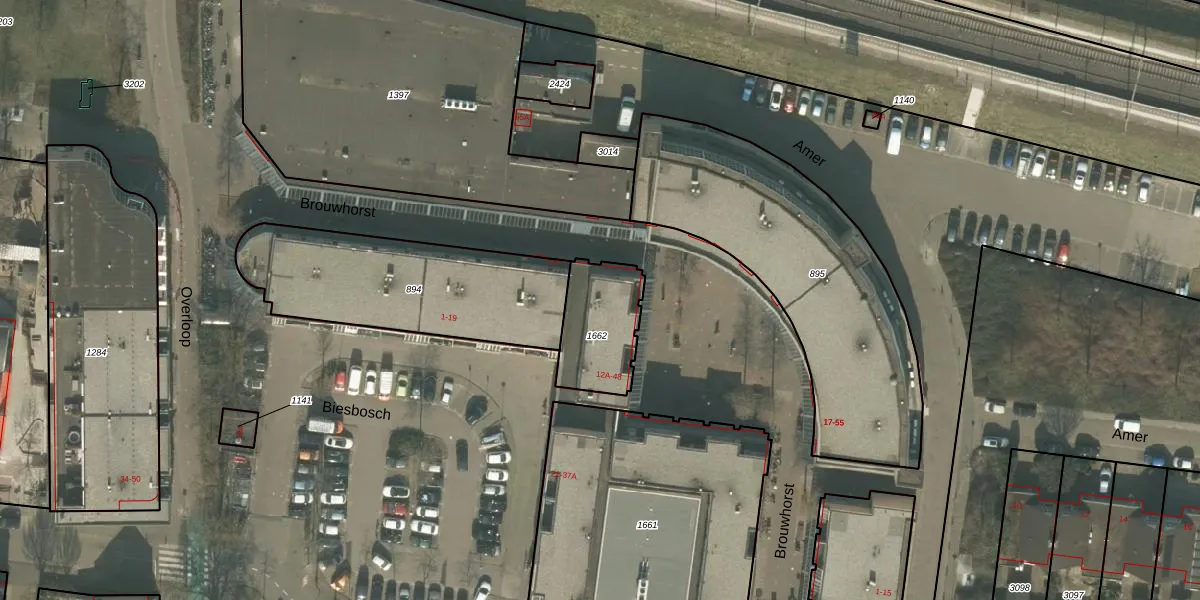 Het adres ligt op het perceel HMD00-O-1662, dat zich in de kadastrale gemeente Helmond bevindt. Het perceel is kleiner dan gemiddeld in Helmond. Het perceel is 268 m² groot, terwijl het gemiddelde ligt op 1471,25 m². Het kleinste perceel in de kadastrale gemeente is 0 m² groot. De grootste perceeloppervlakte is 1,14 km². Op het perceel liggen in totaal 5 adressen. In de Basisregistratie Kadaster (BRK) werden de grenzen van het perceel geregistreerd op 09-02-2009.