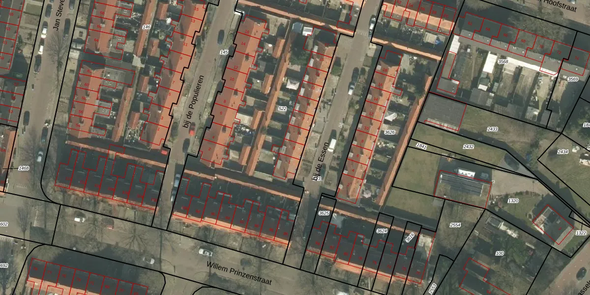 Het perceel waarop bij de Essen 3 staat heeft een oppervlakte van 3920 m². Dit is een zeer groot perceel. De perceeloppervlakte wordt geregistreerd door het Kadaster. Gedetailleerde informatie over de maten van dit perceel kunt u vinden in het rapport Kadastrale kaart met maatvoering van bij de Essen 3.
