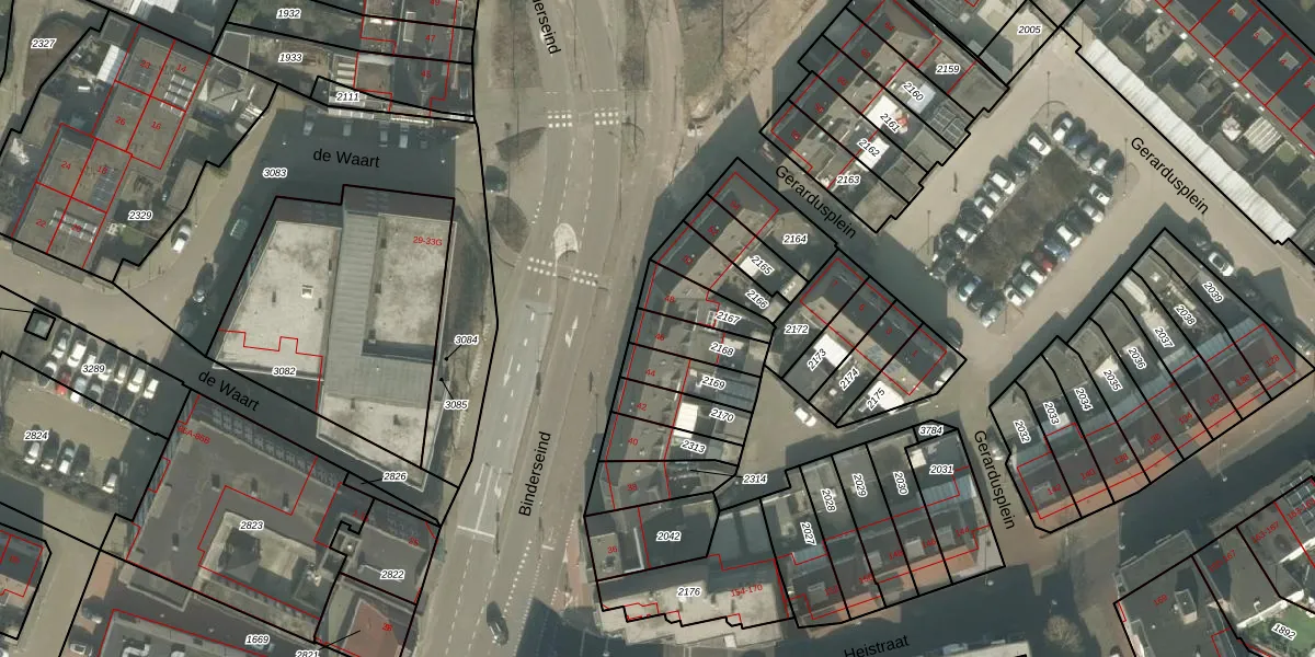 Het adres ligt op het perceel HMD00-I-2168, dat zich in de kadastrale gemeente Helmond bevindt. Het perceel is kleiner dan gemiddeld in Helmond. Het perceel is 114 m² groot, terwijl het gemiddelde ligt op 1470,88 m². De grootste perceeloppervlakte in de kadastrale gemeente is 1,14 km². De kleinste oppervlakte bedraagt 0 m². Op het perceel bevinden zich geen andere adressen. De laatste wijziging in het de Basisregistratie Kadaster (BRK) was op 23-03-2009.