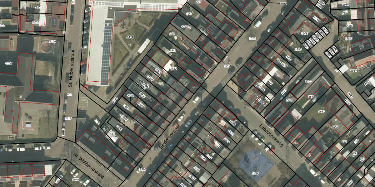 Het perceel waarop Bindersestraat 27 staat heeft een oppervlakte van 168 m². Dit is een middelgroot perceel. De perceeloppervlakte wordt geregistreerd door het Kadaster. Gedetailleerde informatie over de maten van dit perceel kunt u vinden in het rapport Kadastrale kaart met maatvoering van Bindersestraat 27.