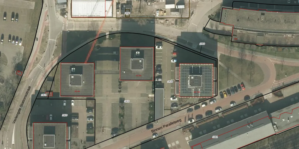 Binnen Parallelweg 44 is gelegen op kadastraal perceel HMD00H1419. Deze kadastrale aanduiding is uniek en wordt gebruikt door het Kadaster om eigendomsrechten en andere zakelijke rechten vast te leggen. Het perceel maakt onderdeel uit van de kadastrale gemeente Helmond.